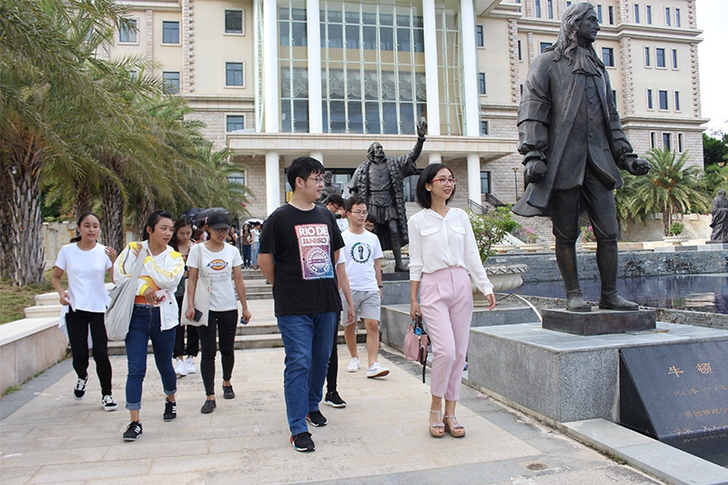 书山馆门口,在卢新新老师的组织下,同学们排成两对,井然有序。对书山馆的参观从书山馆门前的第一座雕像讲起,一路而上,参观十座中外名人塑像。这样的体验式教学不仅极大的增加了同学们的学习兴趣,而且提高了同学们对知识的认知程度。体验式教学主要强调同学们的身体性参与,在学习的过程中,同学们不仅要用自己的脑子思考,而且要用自己的眼睛看,用自己的耳朵听,用自己的语言讲述。用自己的身体亲自经历,用自己的心灵去亲自感悟,结合自身知识水平,增加记忆强度,提高学习效率。
