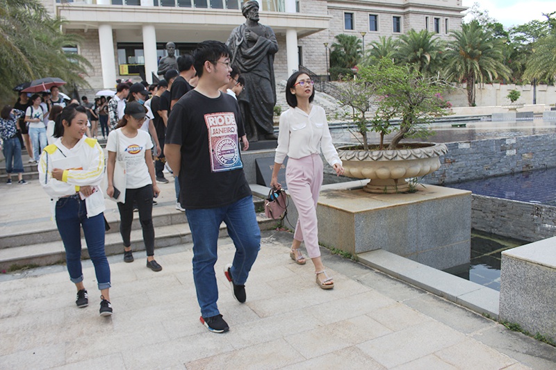 参观完书山馆的馆外建筑,就该向书山馆内部深入了,在卢新新老师的带领下,同学们排着整齐的队伍依次进入书山馆。在书山馆内由图书馆王伟聪老师带领参观,首先参观的是一楼的海南南海船舰科技馆和相机博物馆,然后依次乘坐电梯向上参观。王伟聪老师专业的讲解、丰富的知识和馆内琳琅满目的展品、馆内丰富的图书,各类图书阅览室、讨论室、会议厅等都让同学们对书山馆有了深刻的了解。