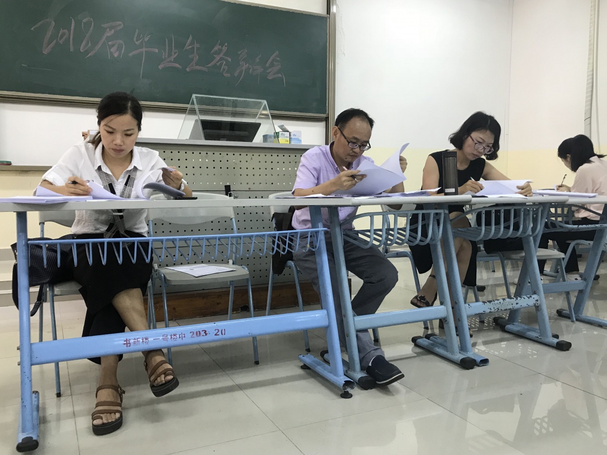 毕业论文答辩是大学生全面展示自己的勇气、雄心、才能、智慧、风度和口才的最佳时机。仲夏蝉鸣,游子意,木棉花开,毕业季;毕业将至,2018年5月5日上午,我院2018届毕业生论文答辩会在书知楼各大教室举行,参加此次答辩会主辩老师有柴勇院长等全院老师。