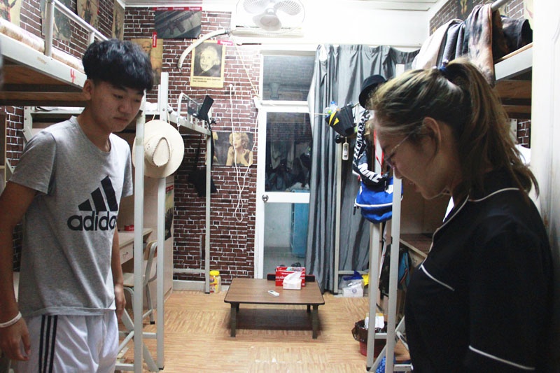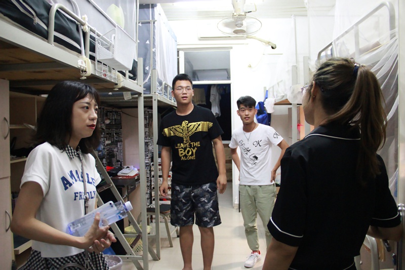 王曦茜和李湘婷老师在走访南一男生5s寝室