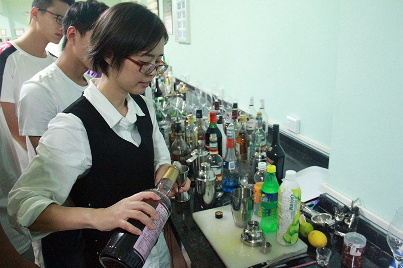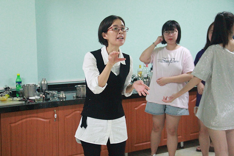 平达曾说:“自然界的一切事物中,唯有水最珍贵。”而饮品便是水的升华,此次课程龚慧老师将带领学生徜徉奇妙的饮品世界。课程开端龚慧老师先为学生介绍各类调酒器具,并指导学生使用调酒壶,讲述其中的原理以及技巧。