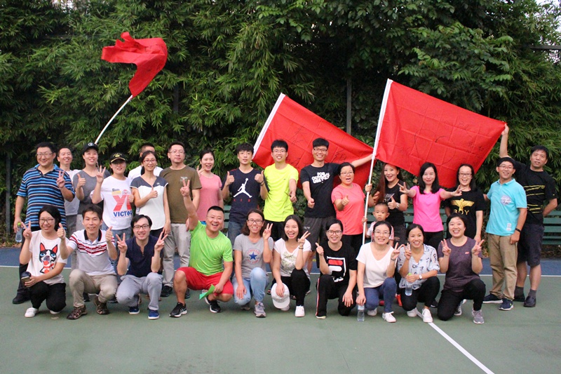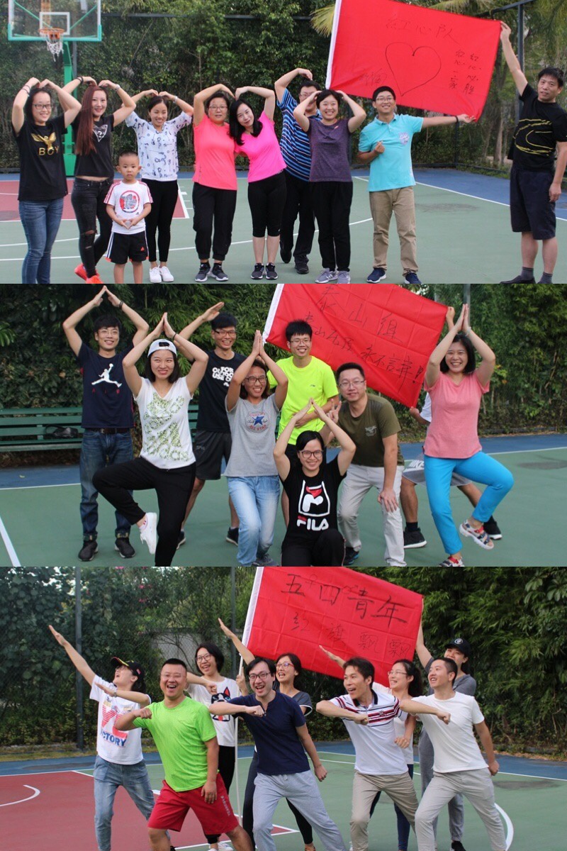 随后便以抽纸牌的方式决定组内成员,并制作本组的队旗,确定每组的组长、队名、口号及造型。所有老师共分为三组进行比赛,分组比赛组织了“解手链”、“叼筷子传皮筋”以及“无敌牛皮纸风火轮”这三个游戏,通过几轮游戏的比拼,增进了老师之间的了解,也增强了老师们的凝聚力和团队意识。