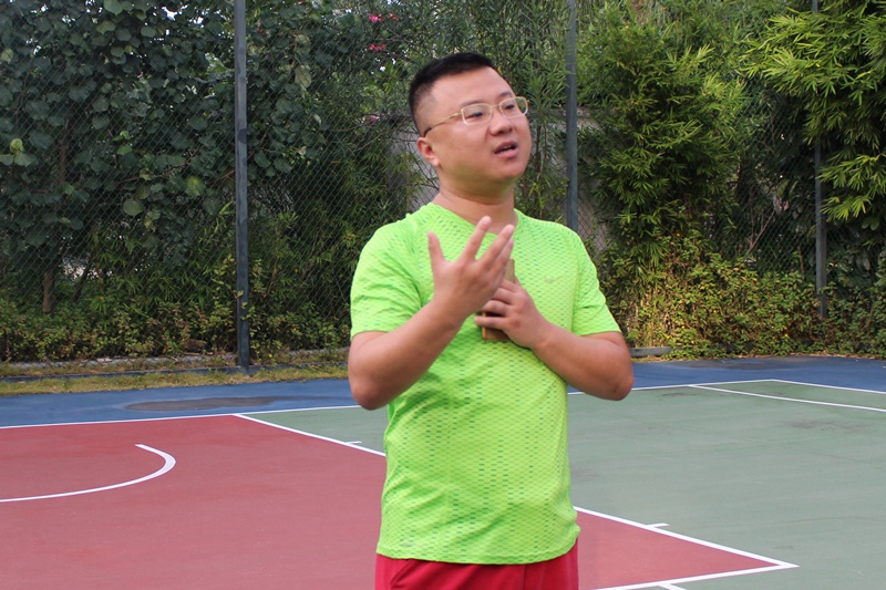 所有准备工作由活动主持人带领,为了保障活动过程中的安全,拓展活动开始前,在主持人的带领下老师们排成几列进行伸展拉伸运动以活动筋骨预防受伤。紧接着进行团体活动,由所有老师一起进行,共展开了“大雨中雨小雨”、“一元钱和五角钱”以及“传递矿泉水”这三个游戏,在各位老师的配合与协调下,体验过程富有节奏感,充分带动了大家的积极性。
