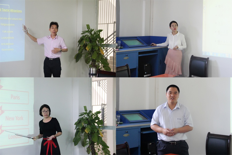 理论讲解首先由鲍富元老师开始,鲍老师主要从旅游资源的分类与特点两方面展开讲述,再从这两方面着手继续展开分支解释。内容涉及很多图片,简单、多元、一目了然。第二位是苏晓梦老师的酒店人生讲解,她主要从:张蓓与花间堂、吴海与他的桔子酒店、中国酒店业传奇三个专题展开讲述,目的是引导大家去了解成功人士的酒店人生,并留下思考问题启发学生计划好属于自己的酒店人生。第三位是王丹鹤老师,她所讲的内容是餐饮服务管理,提出本节课学习目标后转由一个“连连看”的游戏带领大家去体会不同地区的餐饮差别,然后在提出的英式、法式、美式三类餐饮文化的基础上具体介绍了不同的细节问题。第四位是耿佳老师,耿老师讲的内容是酒店前厅的管理信息系统功能、以OPERA PMS系统为代表展开内容填写演示,她强调了不同部门间联系和沟通给酒店管理带来的惊喜效果,清晰易懂。第五位是侯明帅老师,他主要介绍了会计等式的含义及种类,然后分静态、动态、综合三种来继续深入讲解,并进行了简单推算。