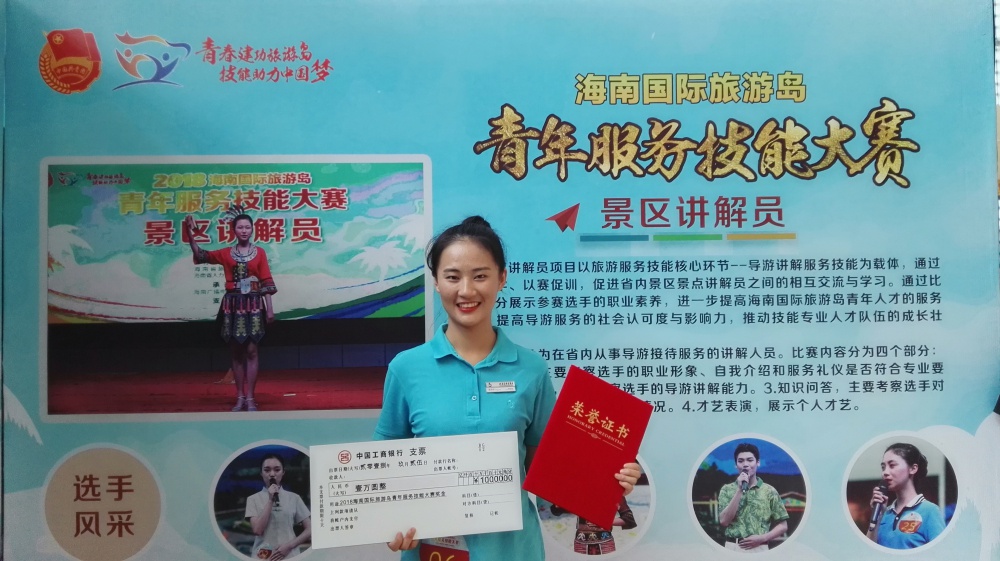 旅行社1601班黄莉莎荣获2018年海南国际岛青年服务技能大赛第二名