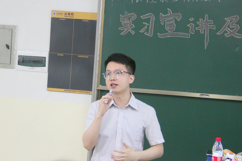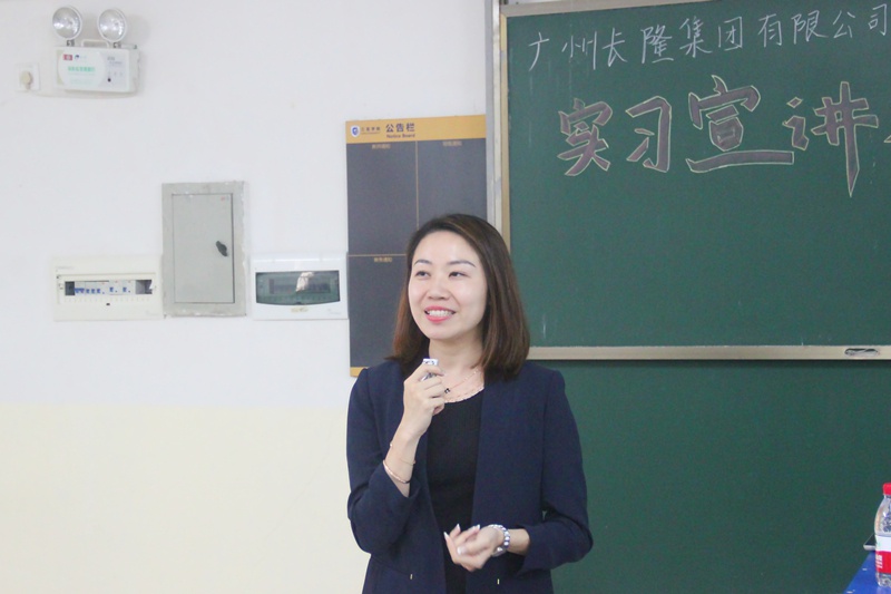 经过易经理对长隆大环境整体介绍后,酒店经理陈炜杰讲述了自己入酒店后的个人经历及其感悟,随后对此次招聘为学生们提供的岗位、实习期间的食宿、假期、待遇等方面一一进行详解。然后,通过举例他们酒店两位高层管理的例子,鼓励学生们要持之以恒,抓住实习机会去成长和飞跃。