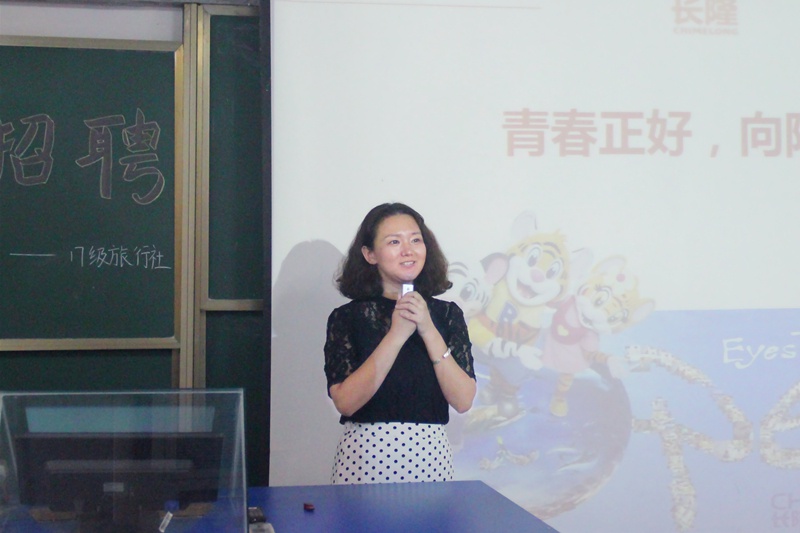 首先,由我院旅行社专业王秋娜老师进行开场讲话。接着,易经理向学生们讲述了在我国旅游产业属于朝阳产业,随着意识形态的回归及人口红利的冲击,旅游产业有着良好的发展前景和发展空间。同时,她通过列出的一组数据得出广东是全国主题公园最多的省份之一,由此而引出宣讲的内容——长隆。播放长隆今年最新宣传片,向学生们展示四个主题公园:广州野生动物世界、长隆欢乐世界、海洋王国及大马戏。紧接着,易经理详细地介绍了这四个主题公园及其特色。