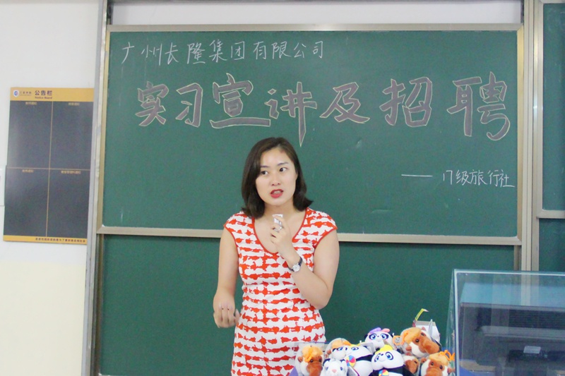 4月17日下午2时,广州长隆旅游集团招聘宣讲于我院书知楼2101教室展开,由广州区酒店集团总监陈璐、广州区酒店经理陈炜杰及人力资源部经理易晶晶进行宣讲,我院旅行社专业及部分邮轮专业的学生持简历参加此次招聘宣讲。