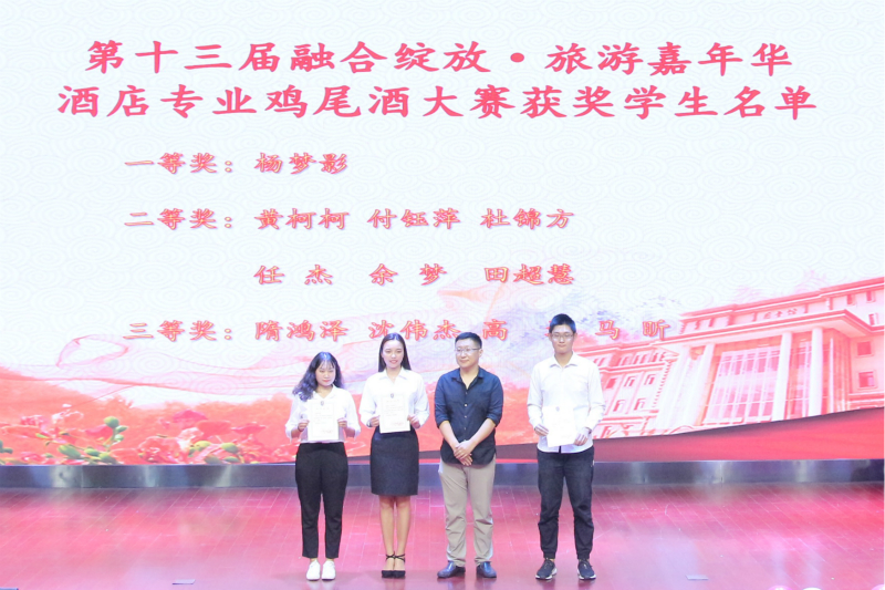 柴勇院长为酒店专业鸡尾酒大赛获奖学生代表颁奖