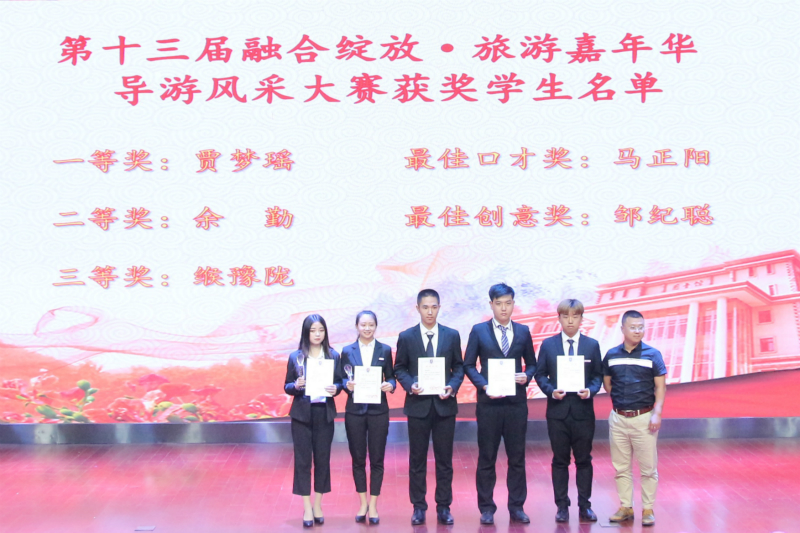 王翔书记为导游风采大赛获奖学生代表颁奖