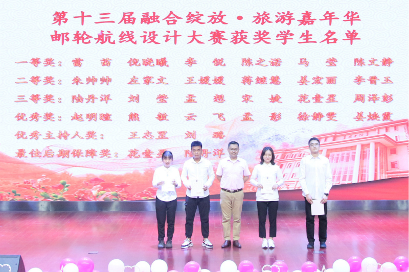 郜宣副院长为邮轮航线设计大赛获奖学生代表颁奖
