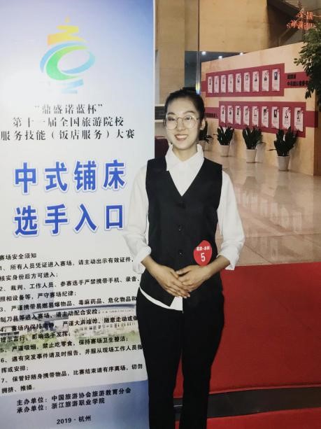 我院代表队参加了本次大赛本科组西餐宴会摆台、中餐宴会摆台、鸡尾酒调制和中式铺床4个项目,这也是我院首次参加全国性的大学生服务技能大赛。