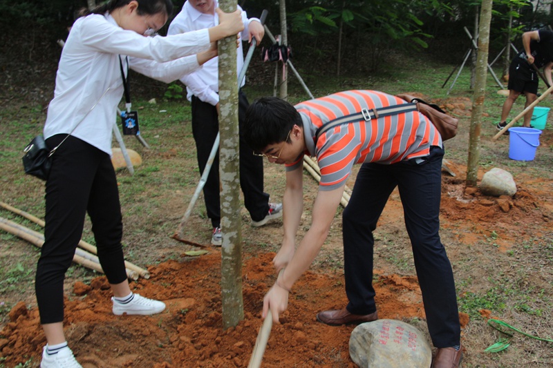 随后,各院开始种植凤凰木。我院老师与学生代表一起种植各班属于自己的那颗凤凰木,每一撬泥土都包含着大学四年里老师的关爱和期望,也包含着学生对老师的感恩、对母校的留念,在凤凰林种下的每颗凤凰木都在阳光下,等待着毕业生们的成长。青春是凤凰木开出的热情,是行云流水的缠绕。渐渐逝去的大学时光被装订成一本泛黄的书,时而回味,书中的青春漫语只能追忆。但青春化作泥土,呵护着凤凰木,而凤凰花是青春的另一种表现形式,花团锦簇代表着在各领域奋斗的毕业生们。
