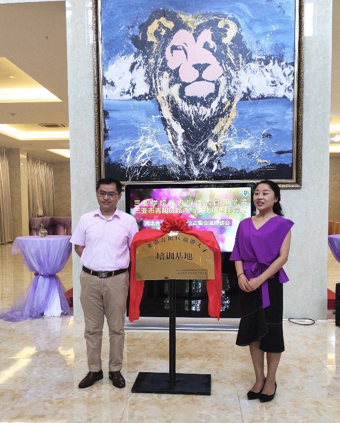2019年6月26日9时,我院与吉阳区政府院地合作项目揭牌仪式暨座谈交流会在三亚学院白鹭苑实训大厅隆重举办。与会人员有校长助理朱沁夫、我院副院长郜宣、党总支副书记王翔及各专业主任、教师;吉阳区旅文局局长吴越岸、旅文局副局长张丽娜、旅文局全域办主任王鹏、吉阳区委组织部干部档案信息中心主任林鸿宇、千古情总经理郑杰君。此次活动是为了加强校企合作、共享资源,积极搭建对接平台、培养优秀学子、提高我院办学质量。