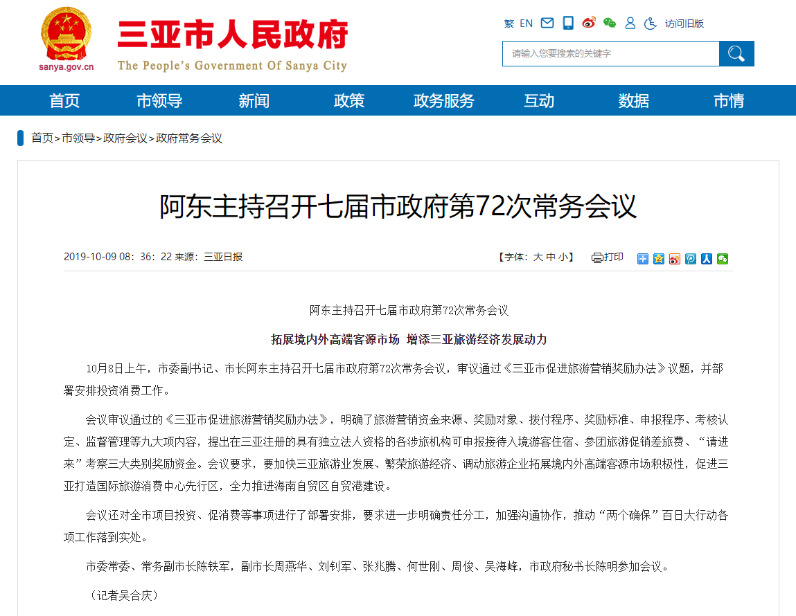 相关链接:http://www.sanya.gov.cn/sanyasite/cwhy/201910/ebf6f3205b3949378deca9f04e5f2958.shtml