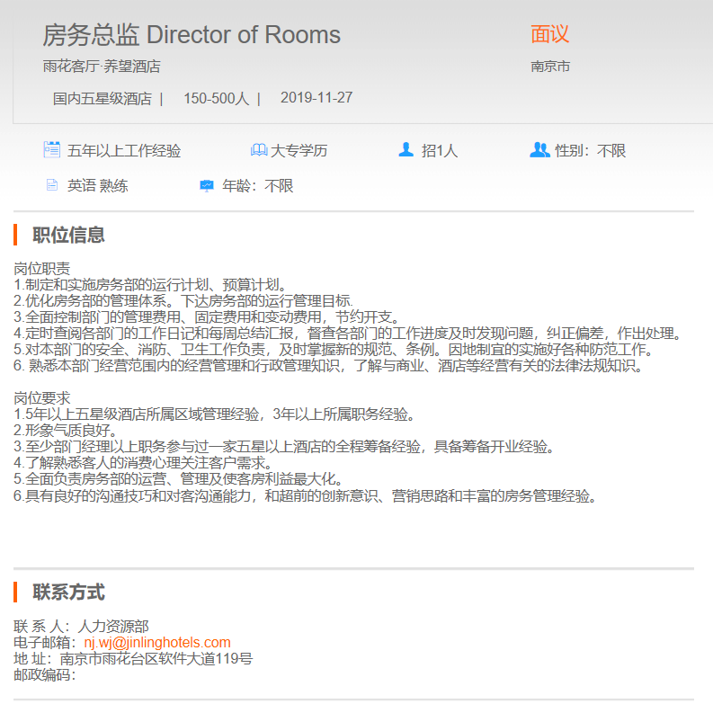 雨花客厅养望酒店房务总监