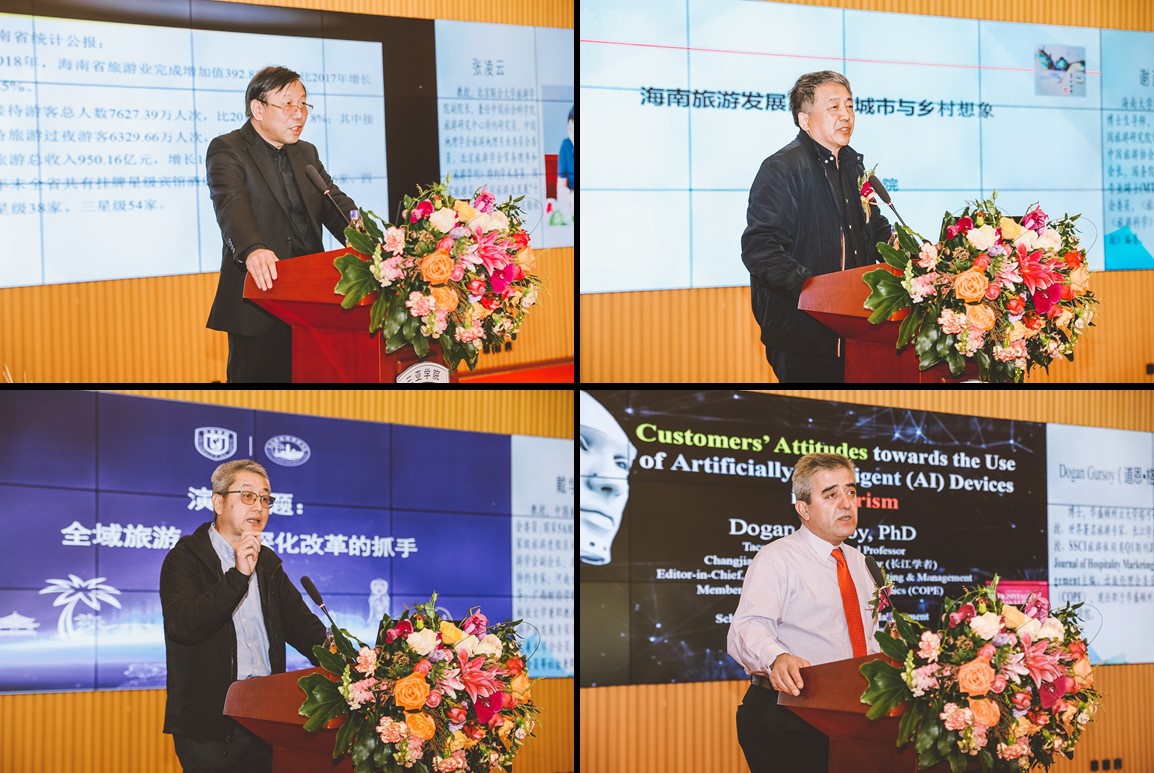 北京第二外国语学院张凌云教授、中国社科院中国旅游研究中心戴学锋教授、海南大学旅游学院谢彦君教授、华盛顿州立大学DoganGursoy教授做主旨发言,分别就海南国际旅游消费中心建设中的供给侧改革、全域旅游、城市与乡村想象、人工智能等主题展开了探讨,从体制机制改革、旅游投资开发、乡村度假旅游发展和技术变革等方面提出了建设国际旅游消费中心的建议。