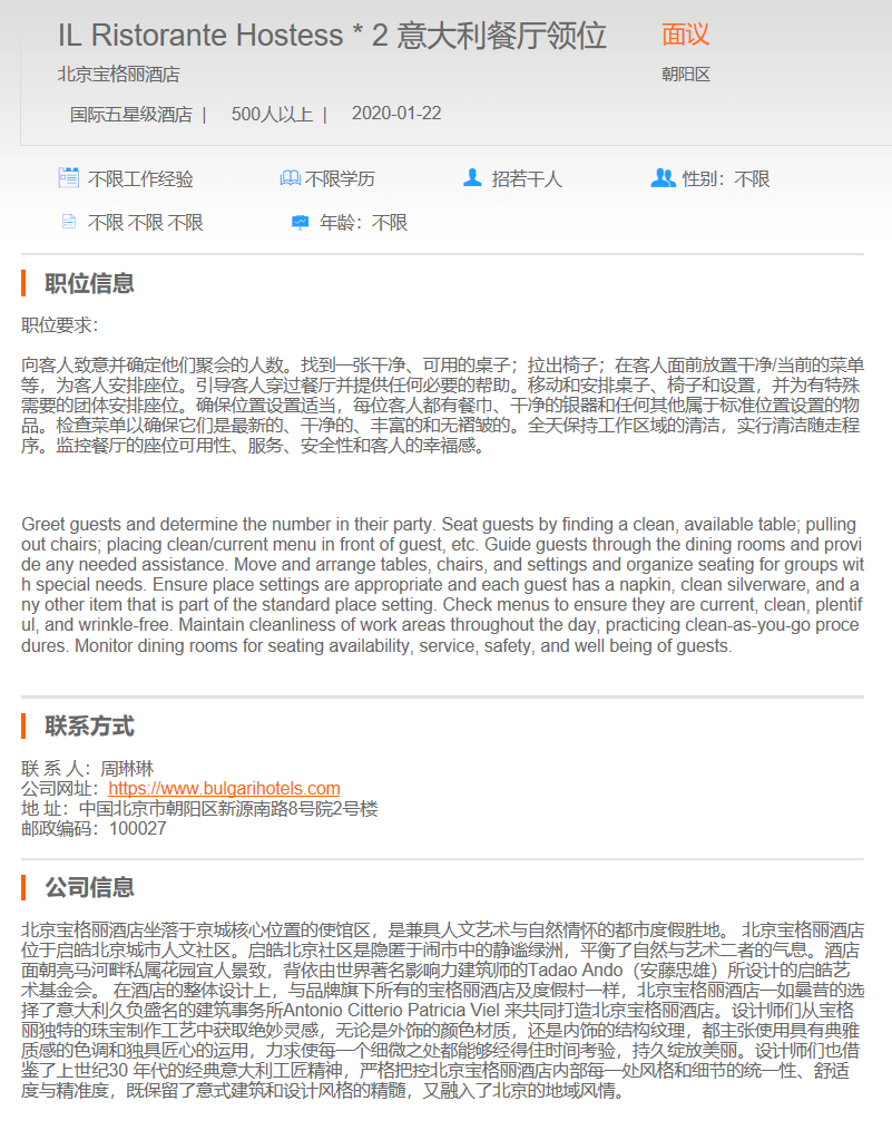 北京宝格丽意大利餐厅领位