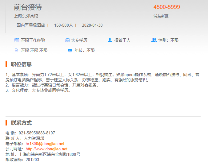 上海东郊宾馆前台接待