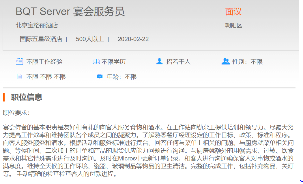 北京宝格丽酒店宴会服务员