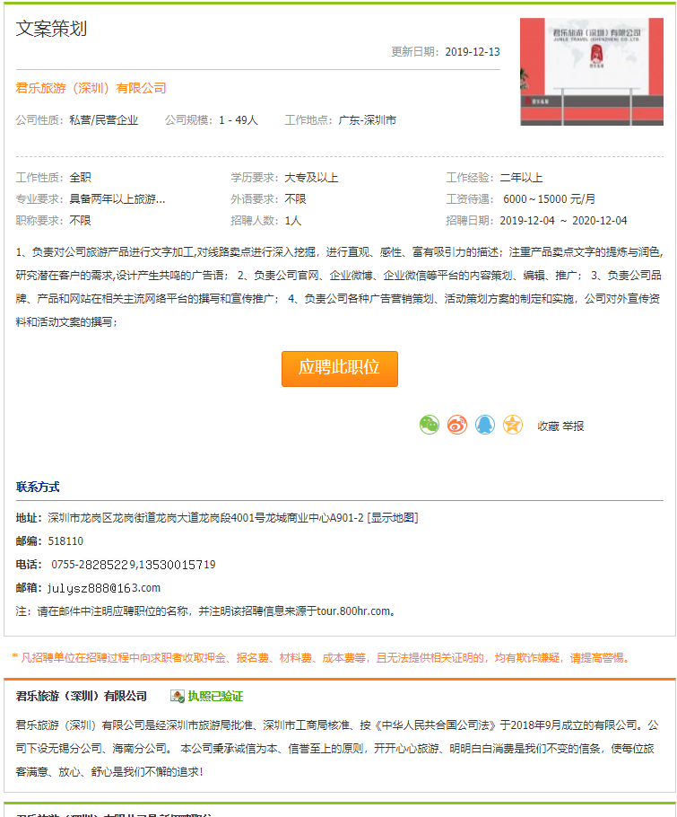 君乐旅游(深圳)有限公司