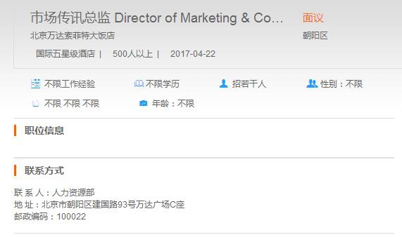 北京万达索菲特酒店市场传讯总监