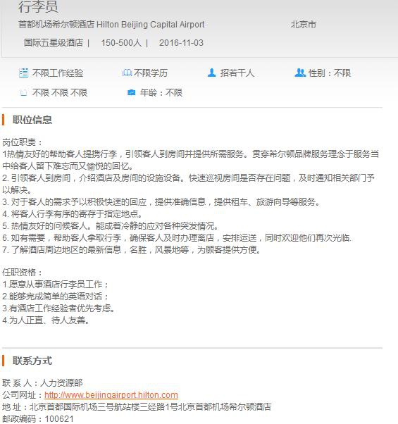 首都机场希尔顿酒店行李员