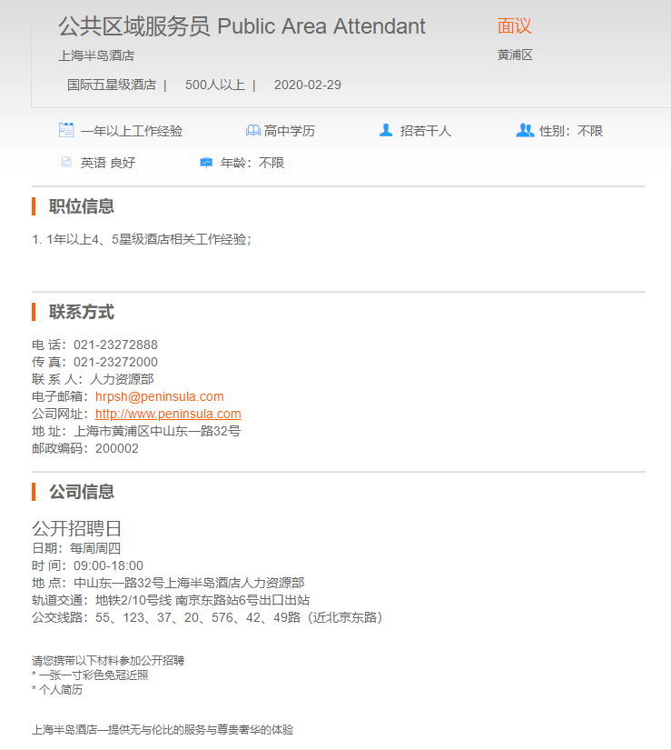 上海半岛酒店公共各区域服务员