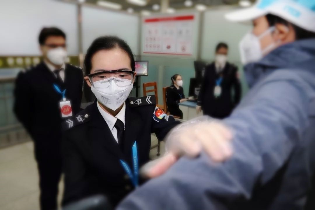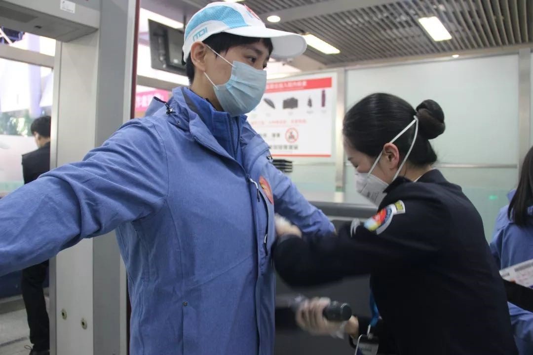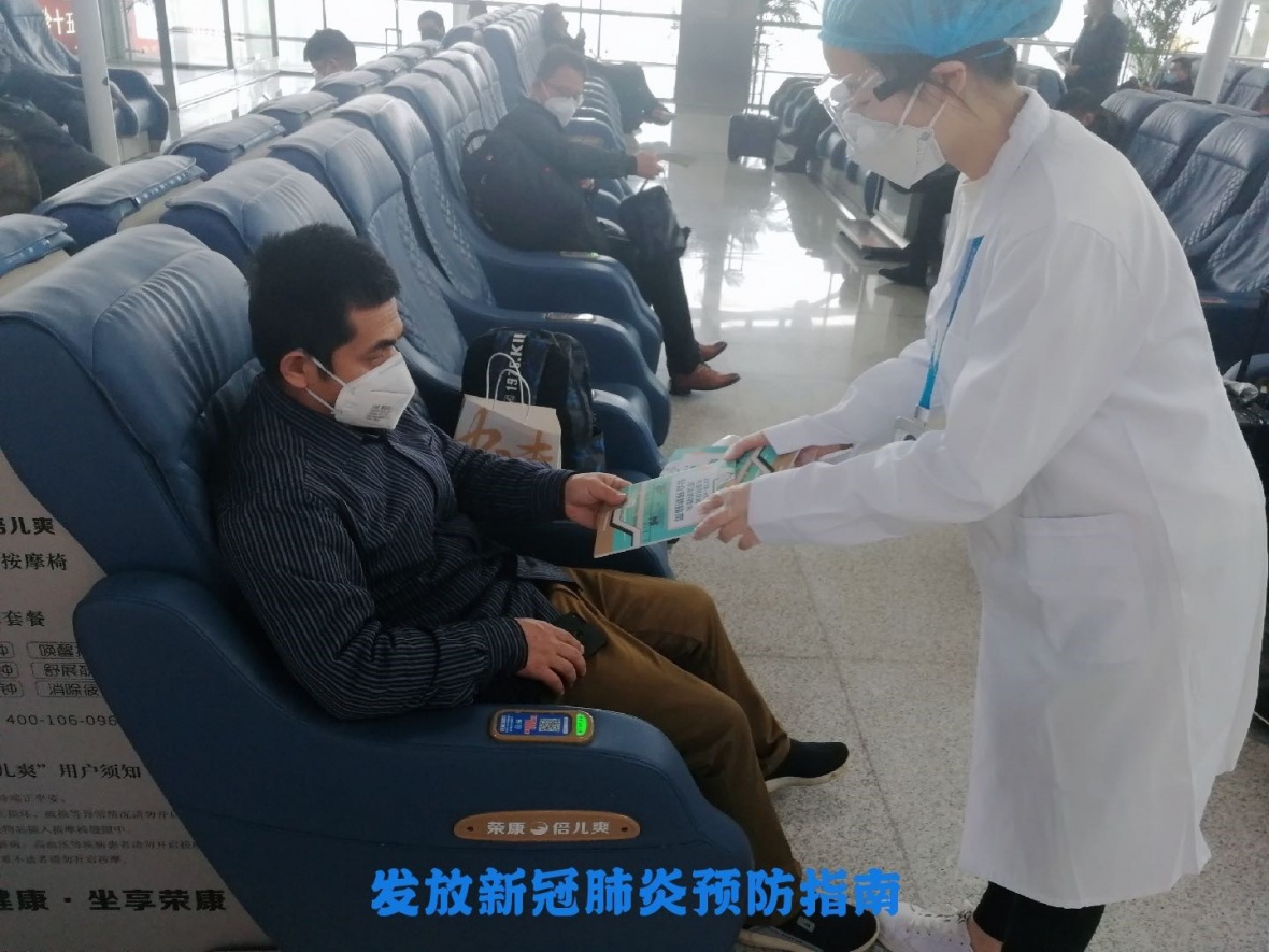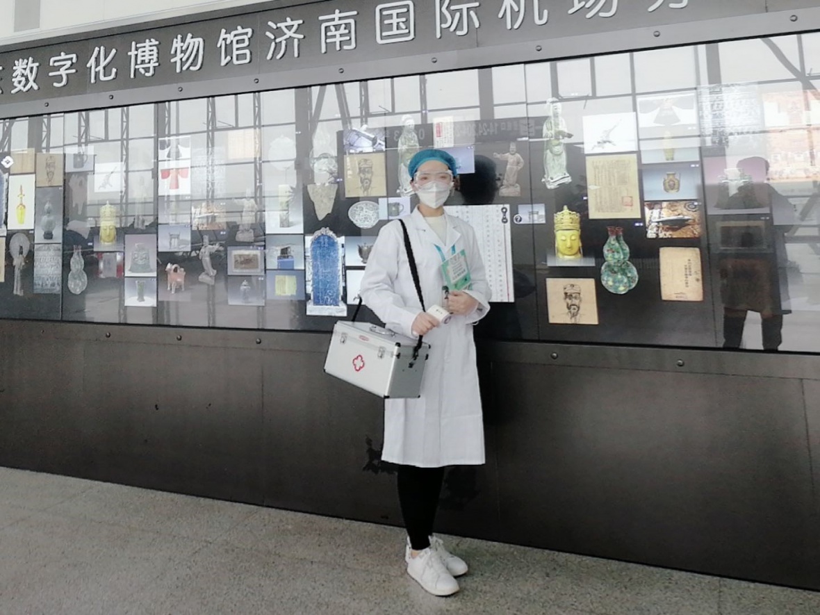 刘鹏娟为山东援鄂医疗队做安全检查
