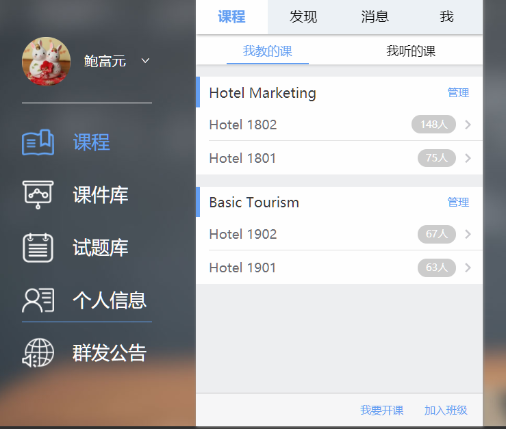 疫情期间,为了积极响应学校“停课不停学”,我院酒店管理专业教师积极采取新技术在网络教学中的应用并认真准备所有课程。耿佳老师基于前期使用智慧树教学平台的经验,再次将自己的《酒店英语》和《宴会设计与会议统筹》课程与智慧树网络课程加以紧密结合,并开通了共享课程,让同学们获得丰富的学习资源。同时,借助智慧树的功能为学生发布学习任务。为保障每次开课的顺利进行,在前期对授课班级进行课程直播的测试基础上不断改进,教学效果良好。