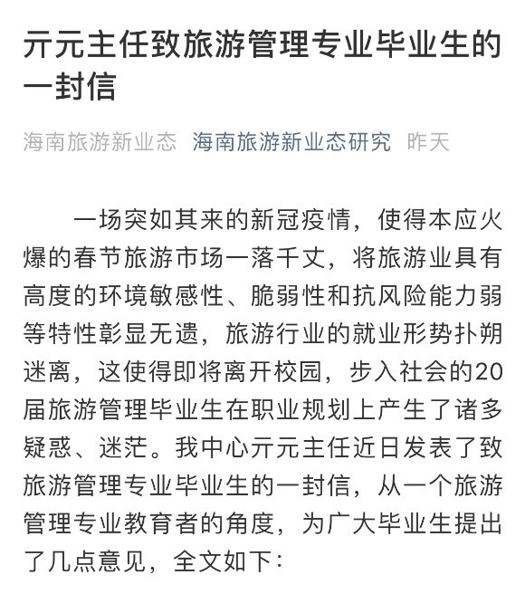 我院亓元老师从一个旅游管理专业教育者的角度,从剖析就业市场形势、选择考研深造思考、选择考取公务员、选择从事本专业工作等方面为广大毕业生提供指导意见,希望进一步让同学们呢能够明确自己的职业规划方向。