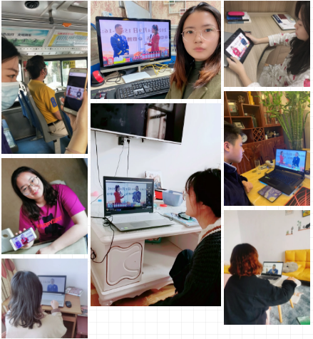 同学们在家认真观看直播