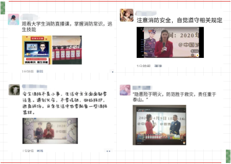 相信同学们的纸质心得也好,朋友圈心得也罢都是发自肺腑的,相信这也正是大学消防公开课的目的,希望大家可以多多学习消防知识,因为即使是一个烟头或者是一个爆竹都有可能引发火灾,而这些又是我们完全可以去避免的,所以希望这个直播会留给大家深刻的印象。