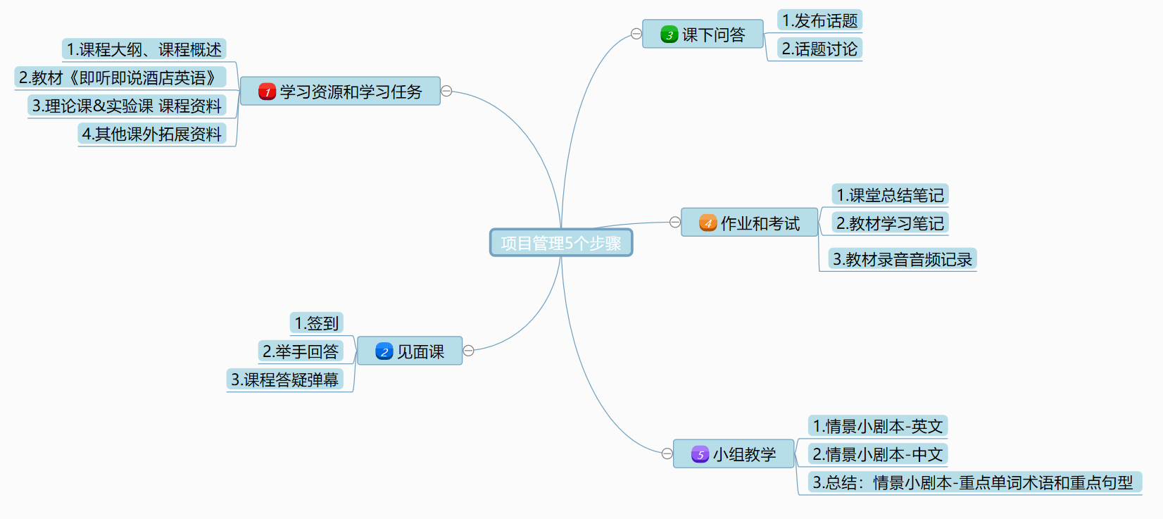 耿佳老师从准备课程资源、创建翻转课、管理学生和课程安排、规划课程作业和考试、组织线下学习和讨论、安排远程直播见面课、追踪学情数据和成绩等12个方面展开了酒店专业课《酒店英语》的远程SPOC教学计划。