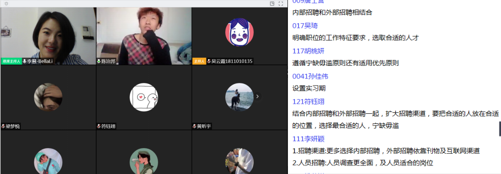 线上混合式课程是同步授课和异步授课的相结合,以本学期的《跨国旅游企业人力资源管理》课程为例,同步授课采用的是腾讯会议线上直播,异步授课则采用的是学校与智慧树建设的《旅游人力资源管理》课程资源。通过课后学生观看智慧树章节视频,课上开展直播讨论与论文解析,既可以提升课程学习的饱满度,也可以提升课程学习的挑战度。但是疫情期间线上授课也面临着一些难题,下面就给大家分享一下我的这门课是如何解决这些难题的。