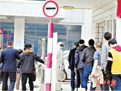 东湖高新区一家企业员工有序排队进厂复工