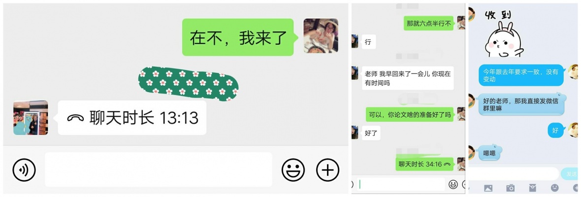电话、邮箱、QQ、微信、语音连线、视频连线等线上沟通渠道在特殊时期,同学们可以很好的进行运用以便与导师保持密切沟通。