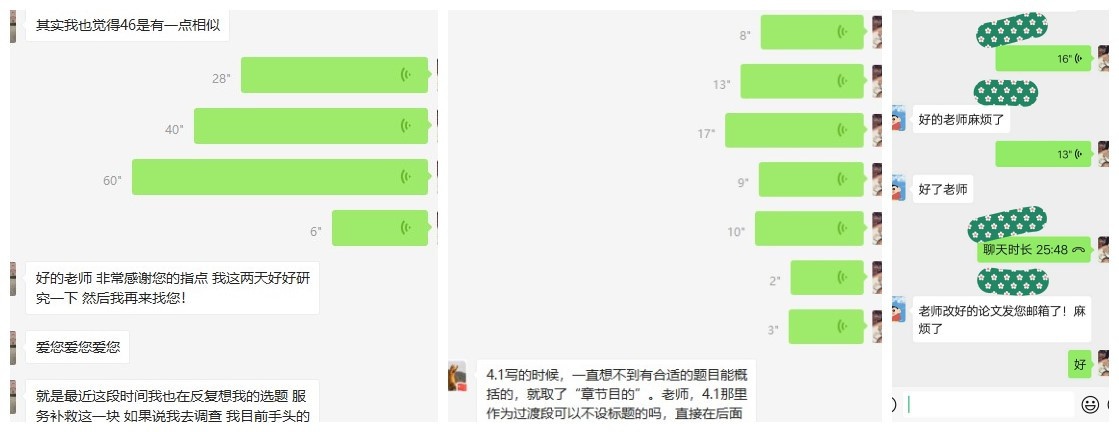 这个世界上最远的距离,不是天涯,不是海角,而是我在电脑的这头,而你不知身在何处。积极梳理在论文修改过程中出现的问题与修改意见,带着思考后的问题主动联系论文指导老师,并不厌其烦地请教,这些都可以帮助你,让你的论文修改过程事半功倍。在线沟通的弊端之一就是沟通的低效性或无效性,存在各种表达与理解上的偏差,因此,就不明白的章节反复地与导师交流直至完全理解,带着思考问题与困惑给导师交流或留言,这些都能保证你不会在花费了大量时间后发现做了无用功。