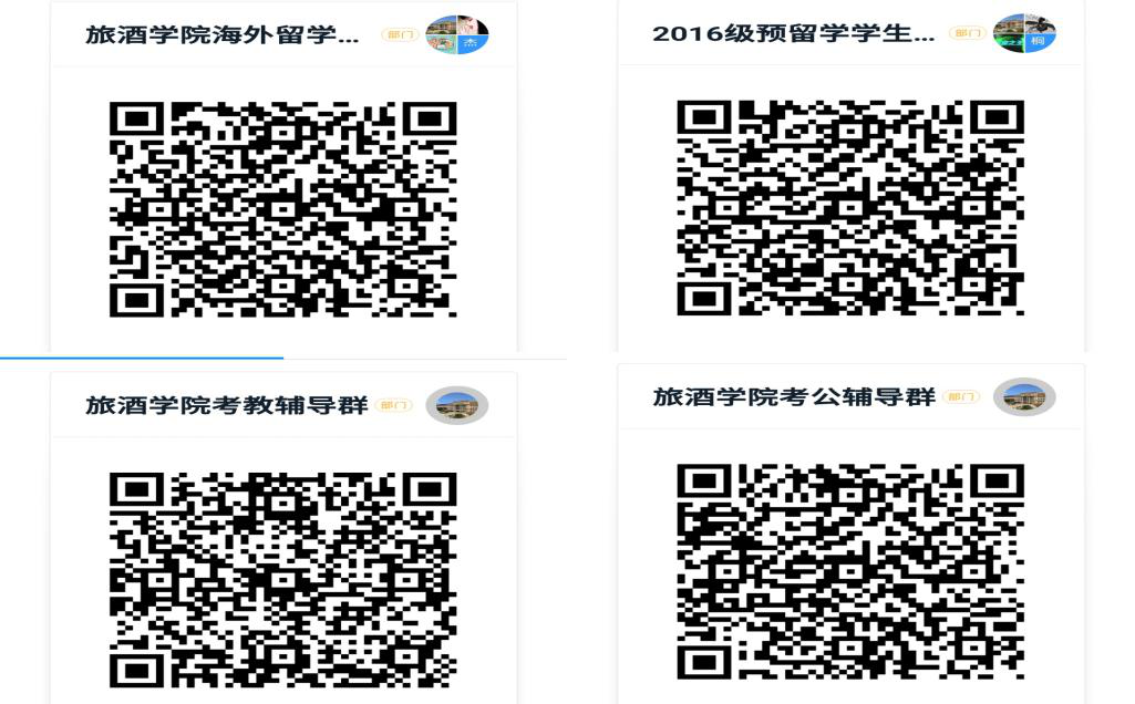 我院海外留学、16级预留学交流群和学生考教师资格证、公务员辅导群二维码
