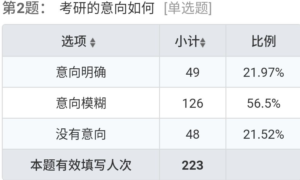 此次调研中,我院17级准备考研的70多名学生中有9名参与抽样调查,18级、19级共有223名学生参与了抽样问卷调查,从有效数据回收情况来看,我院学生中也是掀起了一股“考研热潮”。