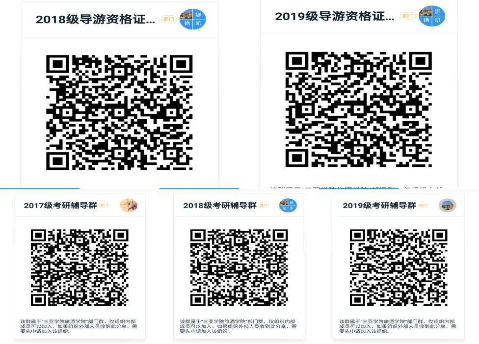 我院各年级考研辅导群和18级、19级报考导游证辅导群二维码