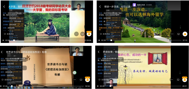 关注不同年级学生的成长需求,开展分类精准学业指导活动,通过不同主题的学群搭建平台集结“学霸”,定期开展经验分享交流会,通过资源共享、答疑解惑鼓励学生共同学习、共同进步。