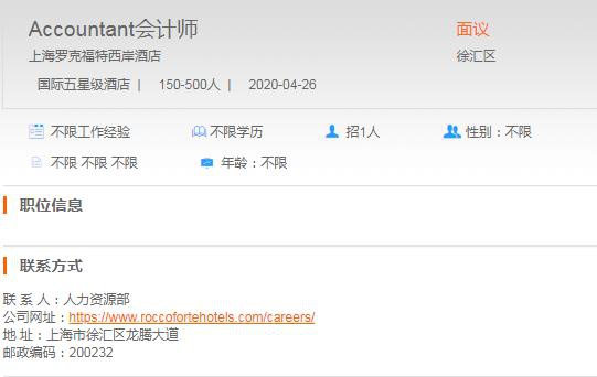上海罗克福特西岸酒店会计师