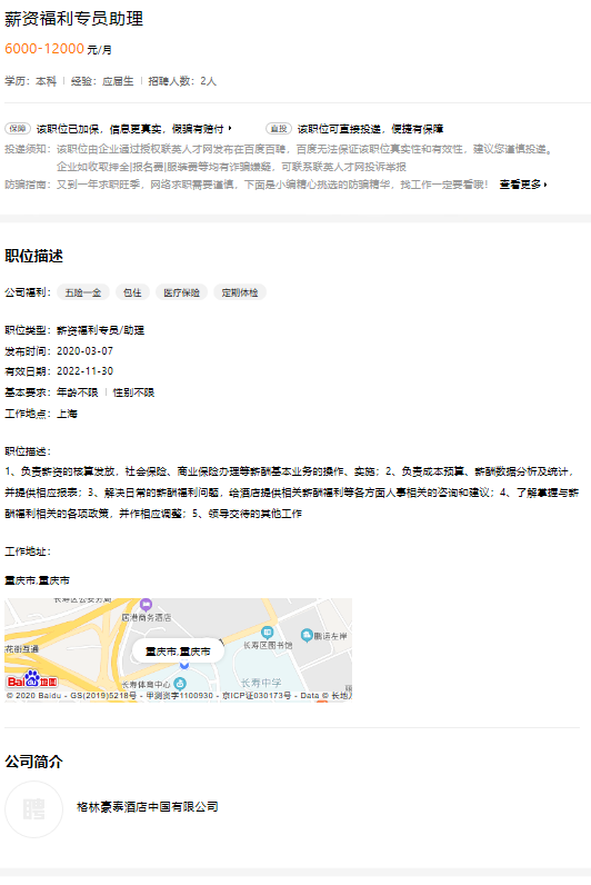 (格林豪泰酒店(中国)有限公司)薪资福利专员助理