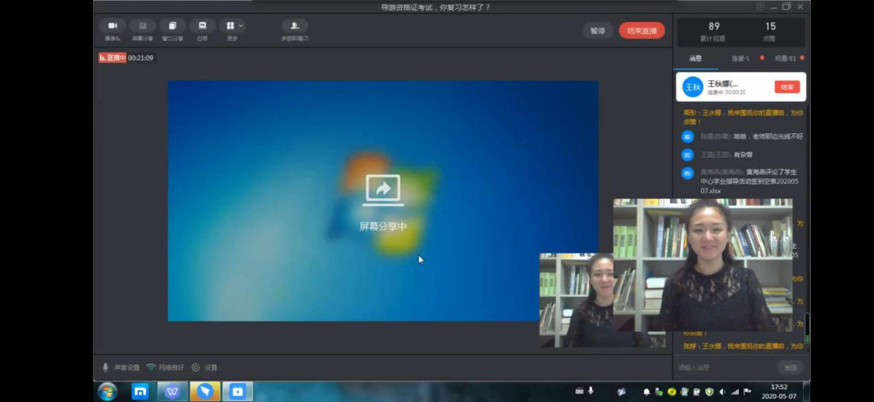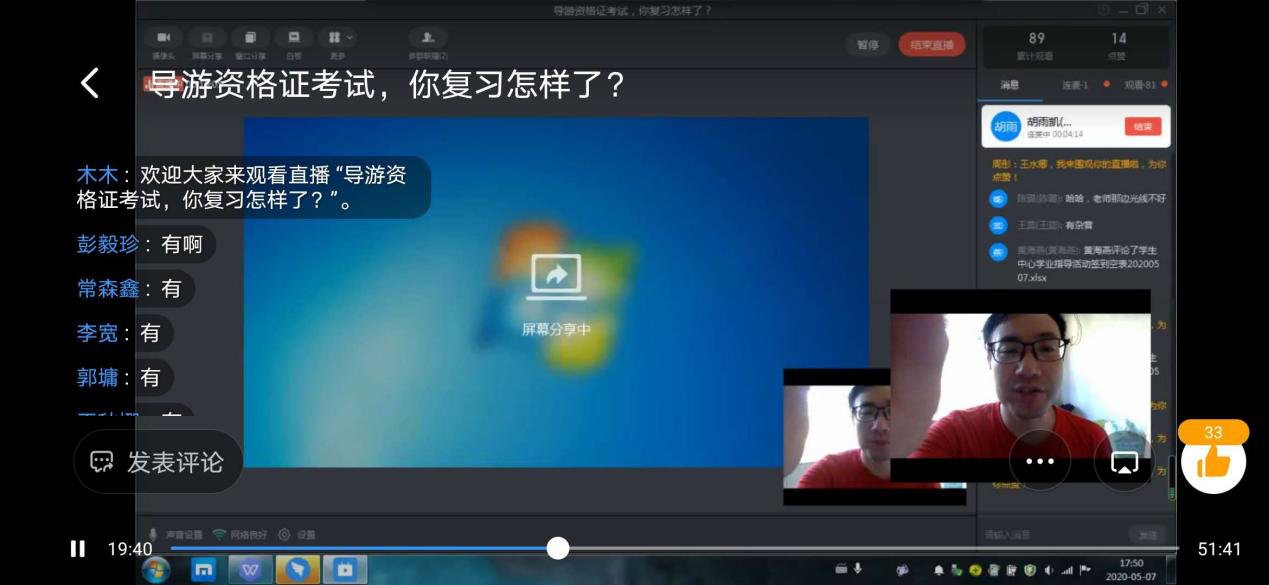 报考导游资格证时间将至,为帮助我院学生了解报考导游资格证相关事项及如何更好地应对导游资格证考试。我院学业指导师王水卿于5月7日17时,在钉钉直播平台展开并主持主题为“导游资格证考试,你复习怎样了?”的第二课堂学业指导活动。特邀旅行社专业负责人王秋娜、旅行社专业于淑艳和胡雨凯三位老师共同为我院学生解疑释惑,我院100多名学生积极参与此次活动。