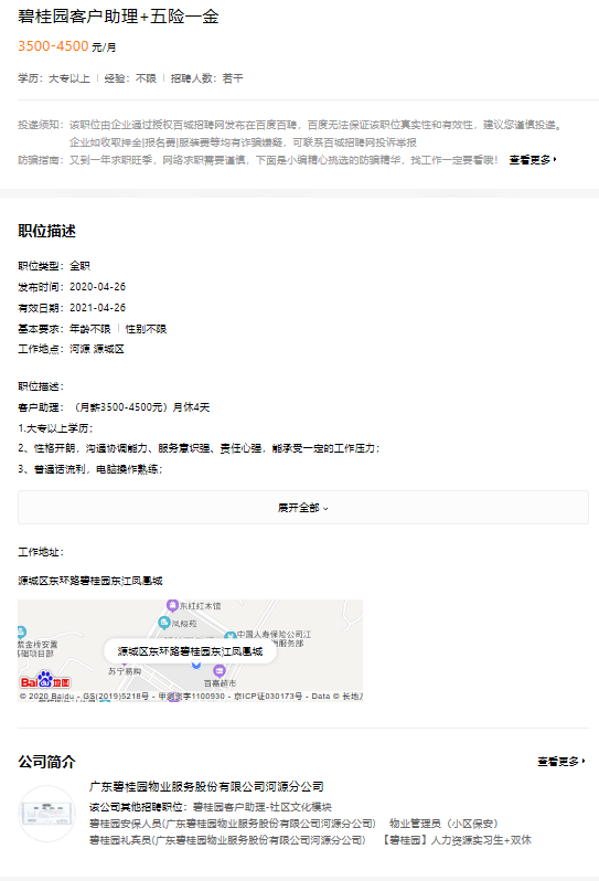 碧桂园客户助理+五险一金
