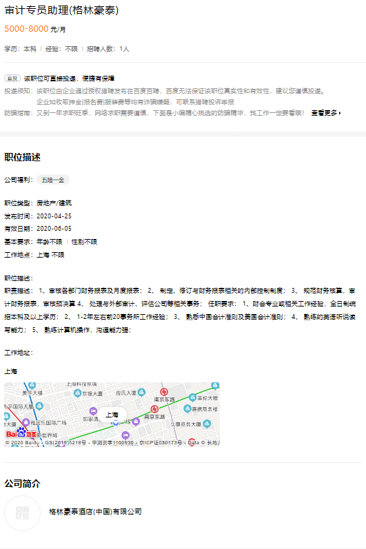 审计专员助理(格林豪泰)