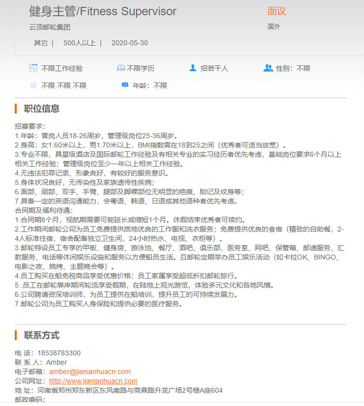 云顶邮轮集团健身主管