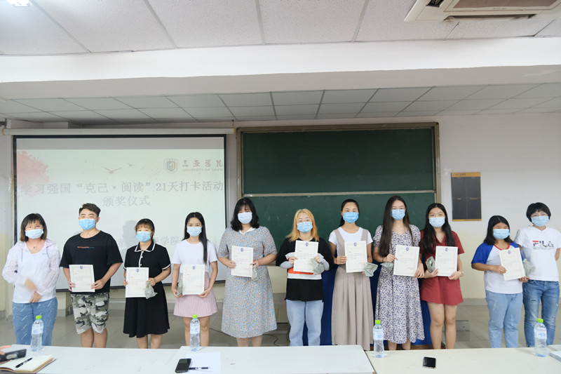 为激励学生养成良好的习惯,我院举行的“克己•阅读”21天打卡阅读顺利结束,并于6月29日下午在书知楼1208举行“克己•阅读”21天打卡阅读养成活动的颁奖仪式。