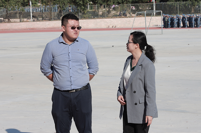 团委副书记吴小柳和思想导师曹添慰问教官和学生